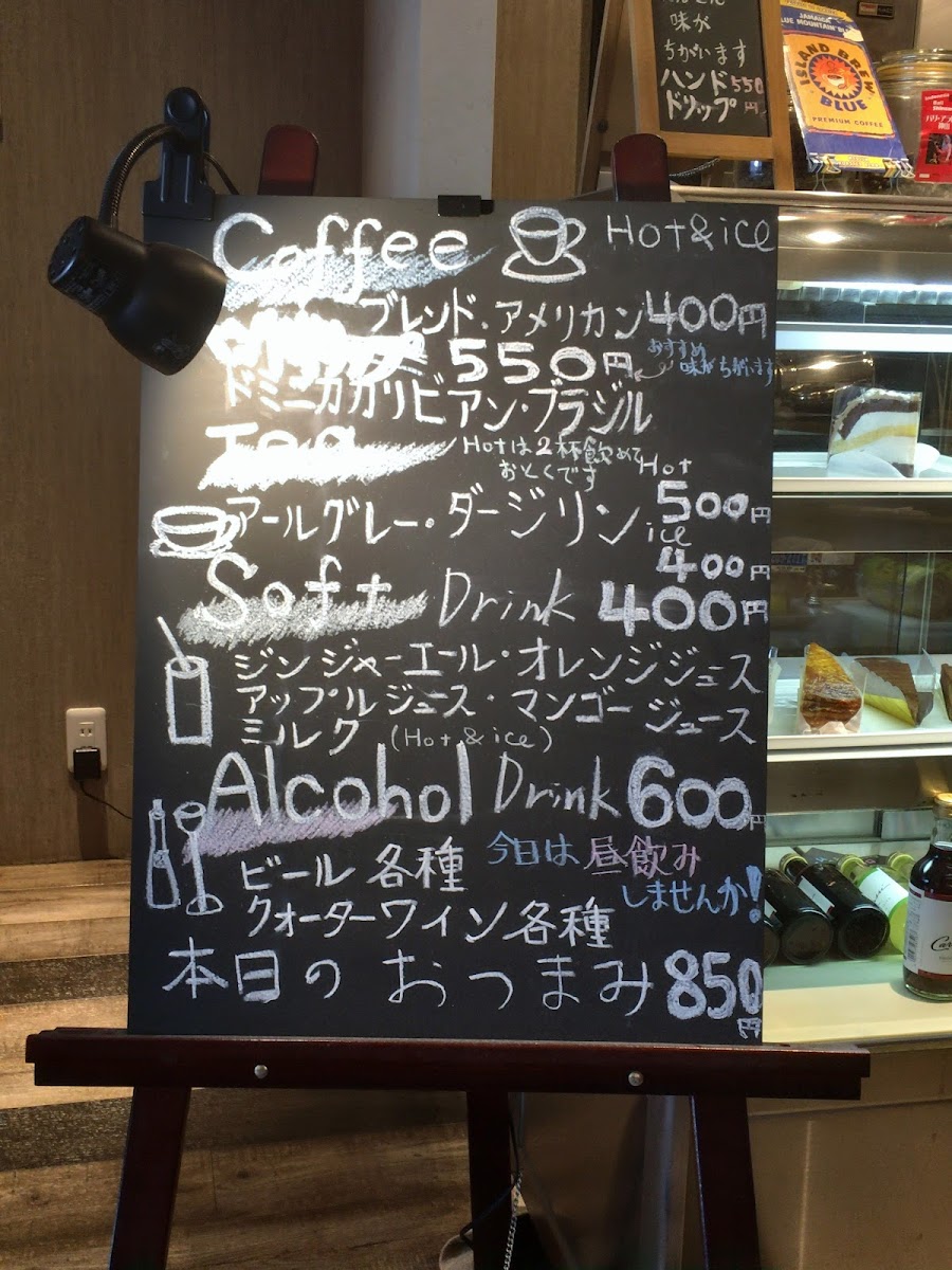 The menu features a variety of coffee beverages, including both hot and iced options, with a focus on hand-drip and blend coffee styles. Alongside drinks, the menu offers a selection of light food items and desserts suited for coffee breaks or casual dining. Visitors can find a range of pastries and cakes, such as cheesecake, chestnut pastry, Mont Blanc, and other sweet treats, which complement the beverage offerings.